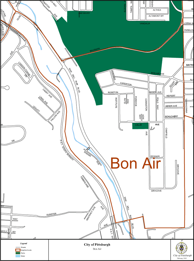 Bon Air is a quaint residential neighborhood isolated geographically because of its peak position atop a hill.  Surrounded by Brookline, Beechview, Mt. Washington, Beltzhoover, Knoxville, and Carrick, it’s interestingly only accessible by road through Knoxville; there simply aren’t very many streets in this neighborhood!