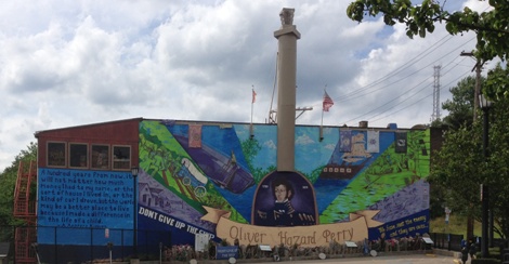 We can take the history back a step further, too. According to the Carnegie Library of Pittsburgh, the neighborhood’s busy bisecting street – Perrysville Avenue – was once a part of the Venango Trail. The library explains that “Commodore Perry used the Trail to carry supplies from Pittsburgh to Erie for his lake battle against the British during the War of 1812.” That would explain this gigantic mural seen across the street from Perry High School in the business district of Observatory Hill (Perry North)!