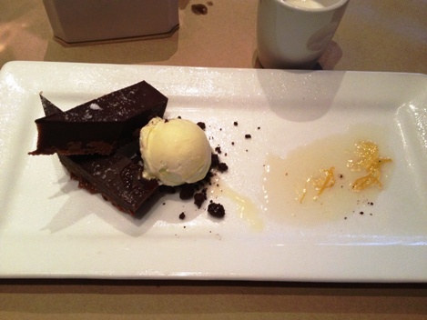 Salted Caramel Chocolate Bar, Olive Oil Ice Cream and Candied Lemon Marmalade